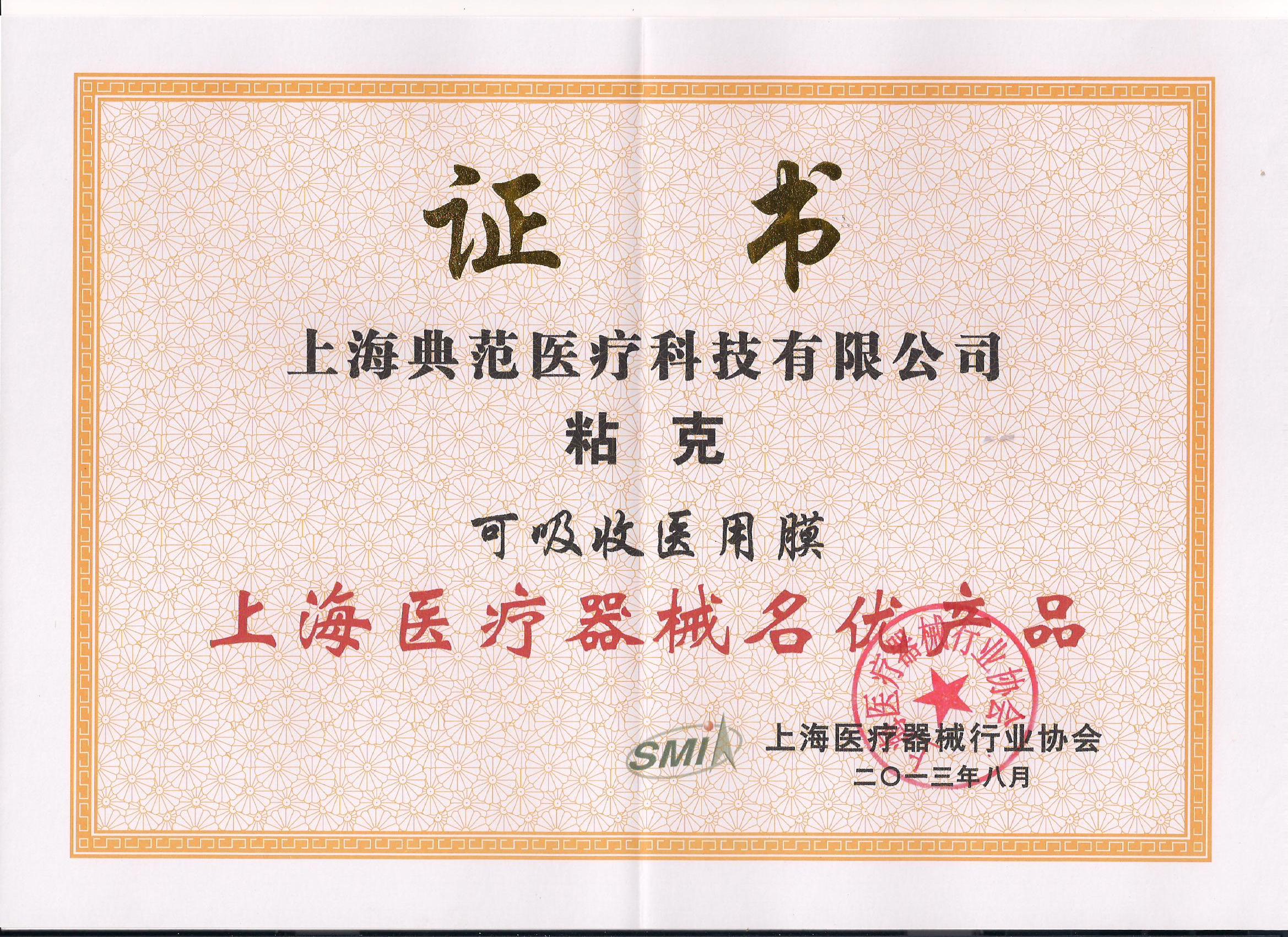 上海市名優(yōu)產(chǎn)品證書